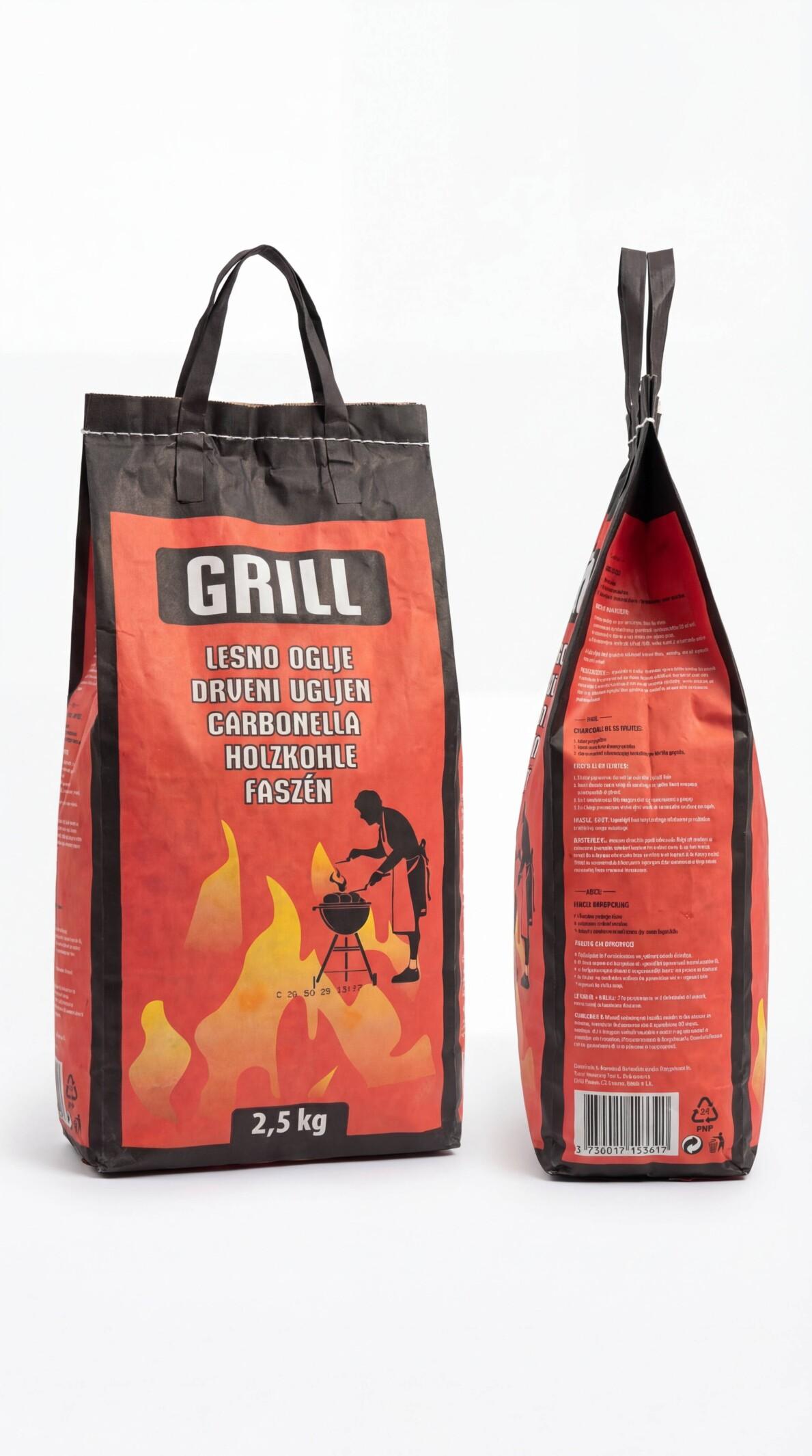 Grill lesno oglje v papirnati vreči. Lesno oglje za žar je proizvedeno na tradicionalen balkanski način. Pri izdelavi oglja se uporablja predvsem bukov, gabrov in hrastov les, ki zagotavlja počasno gorenje in obstojno razporejeno temperaturo. Gre za nepogrešljiv izdelek na vsakem domačem pikniku.