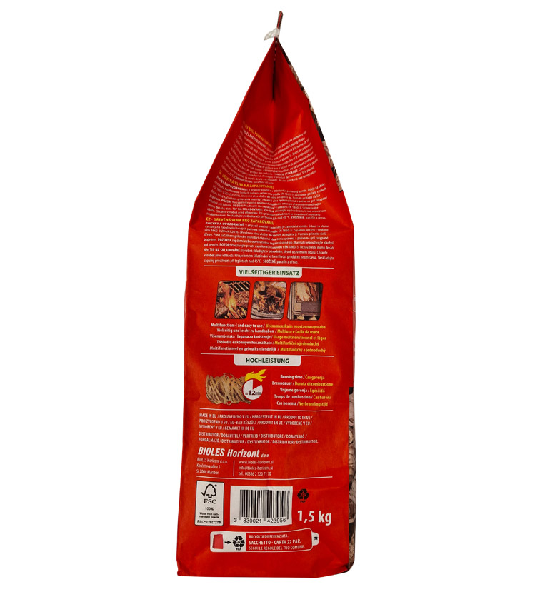 Večnamenska, za prižiganje ognja v vseh pečeh na trdo gorivo, kaminih, roštiljih in ognja na prostem. Narejena je iz naravnih snovi: lesenih trakov in voska, ne vsebujejo kemikalij in je okolju prijazna.